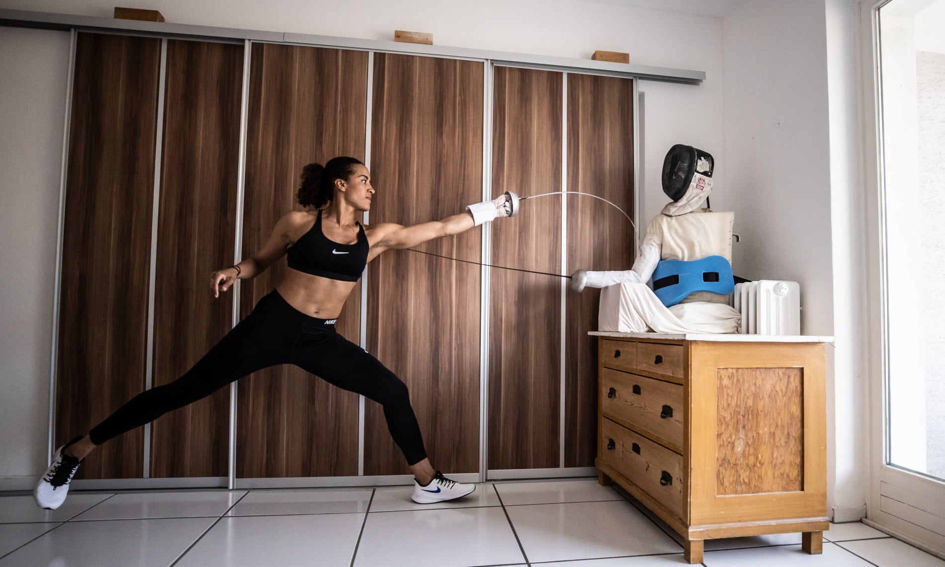 As the lockdown continues, one thing that COVID-19 has brought out in athletes the world over is creativity. When you can't get to the gym and don't own the equipment you might usually depend on, you learn to improvise. Therefore, I was inspired to see The Guardian's gallery of athletes from around the world working out at home in a variety of ways. One of the more striking images in the bunch is that of a fencer who is clearly yearning for some interaction with others.